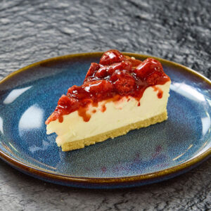 Tarta de queso casera hecha al horno, con un toque de frambuesa.